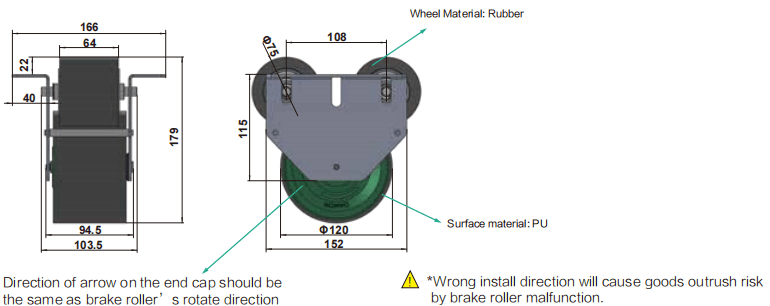 * BT120 tandem brake is suitable for pallet wheel track.
